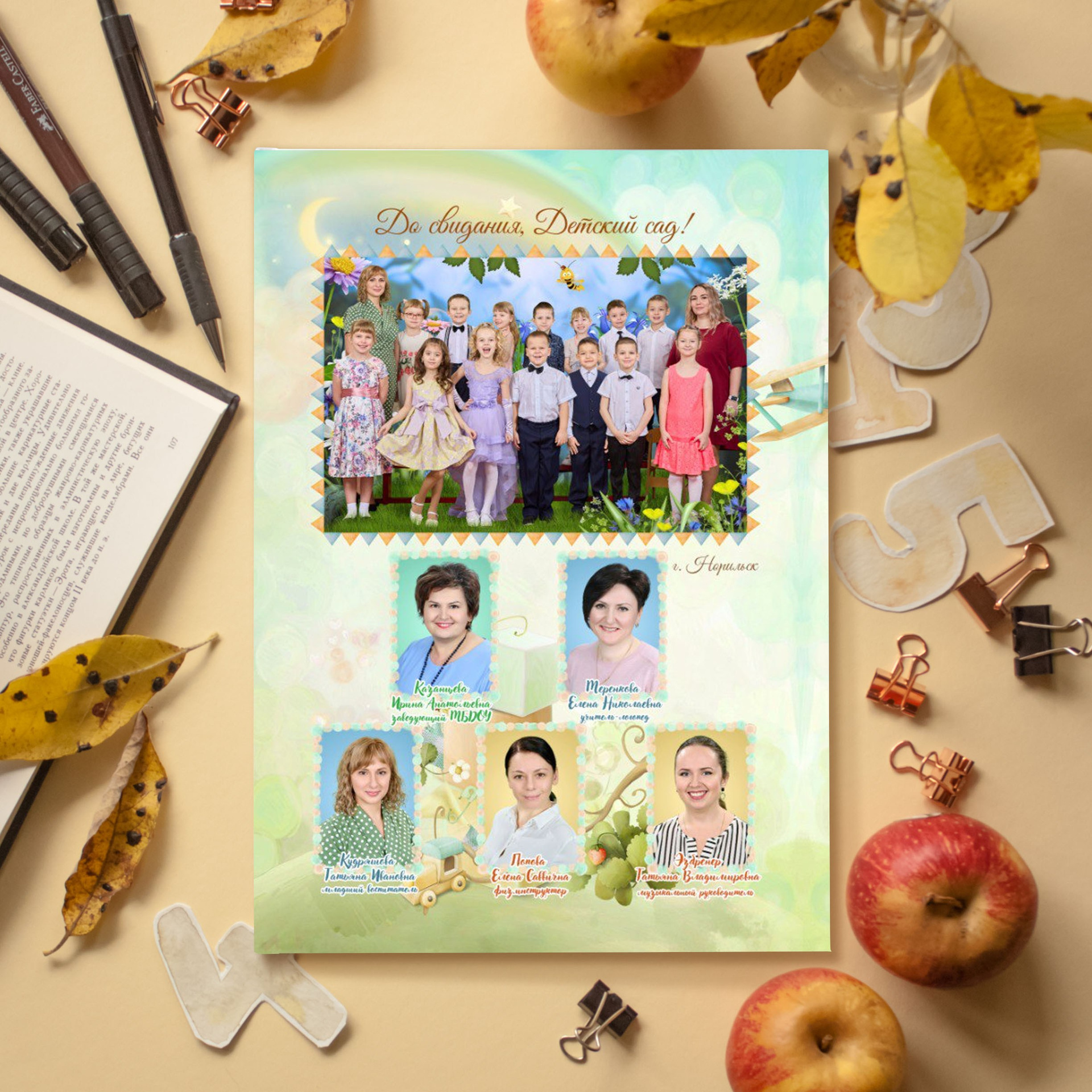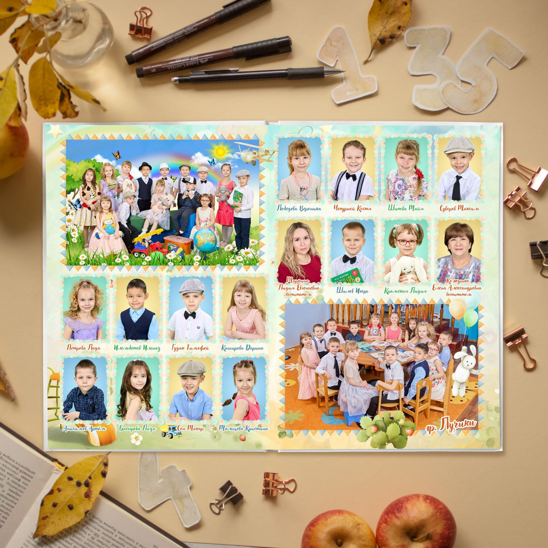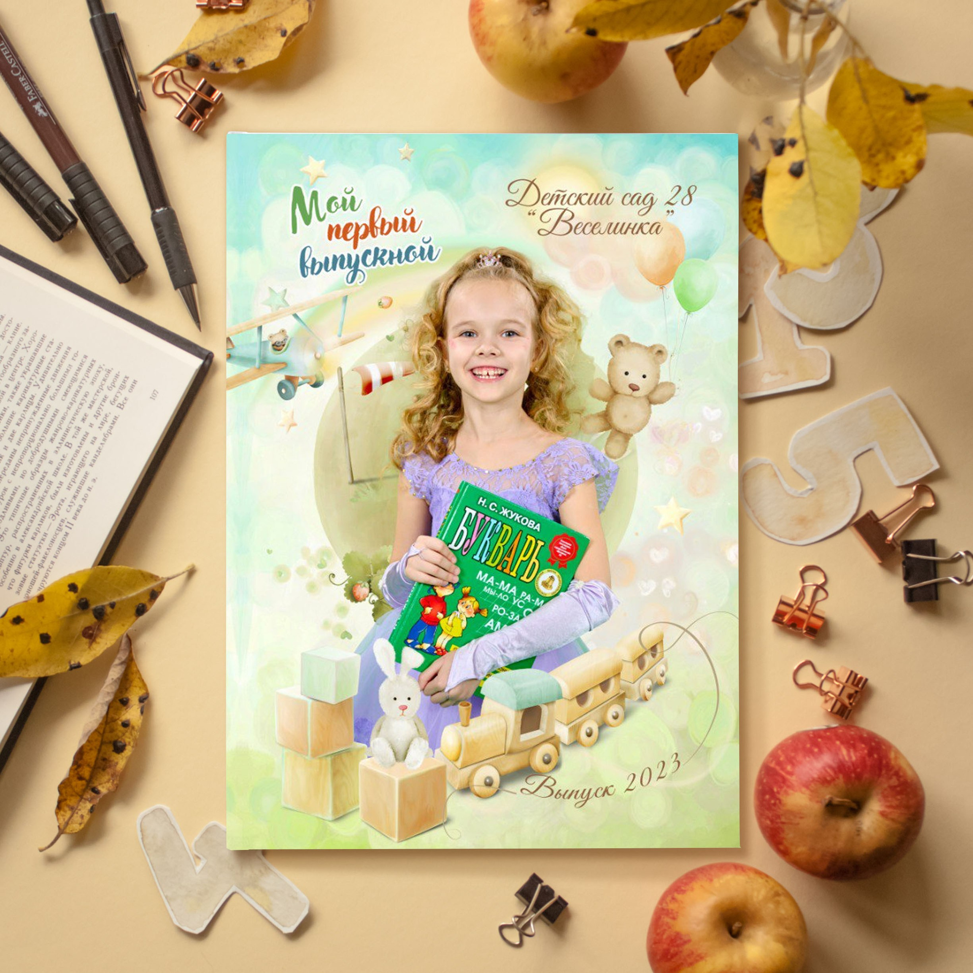 Формат А4, портрет обложке, 1 разворот. Фотопечать, страницы твёрдые.