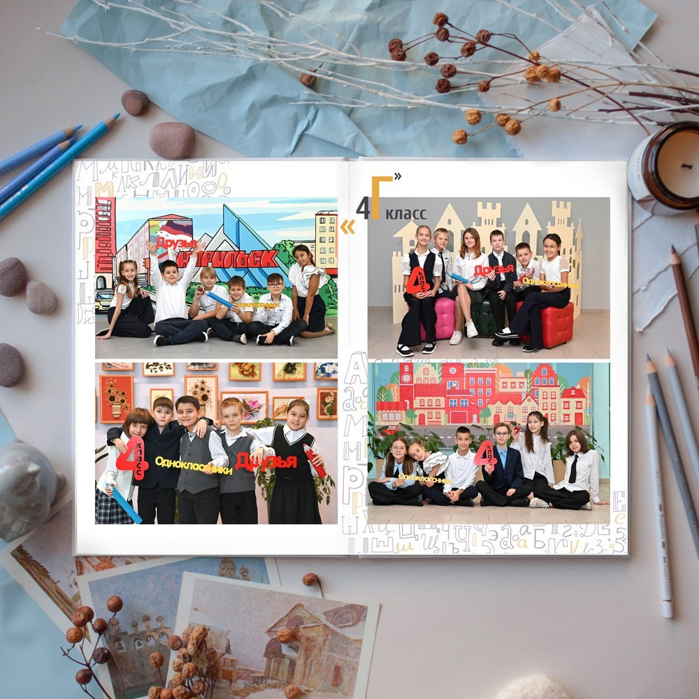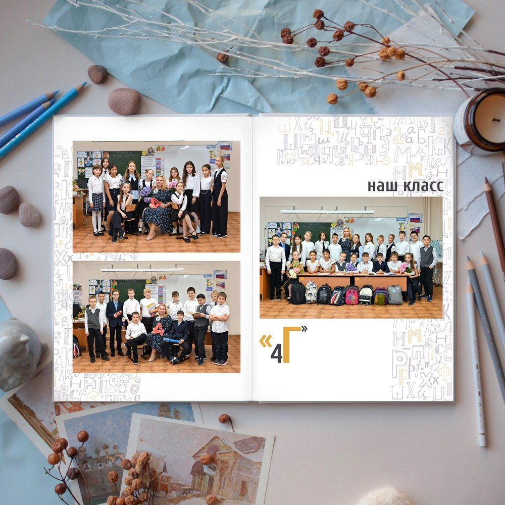 Формат А4, 3 разворота (6 страниц). Фотопечать, страницы твёрдые.